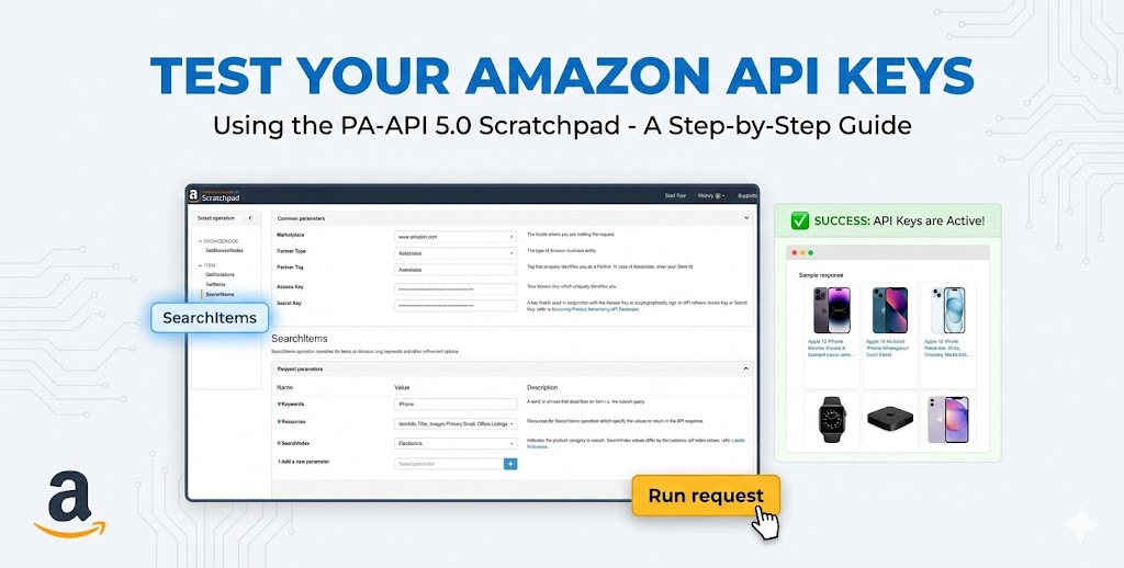 The best way to find out is to test your keys directly at the source. Amazon provides a free debugging tool called the Scratchpad. If your keys work here, they work everywhere. If they fail here, the issue is with your Amazon Associates account or credentials.